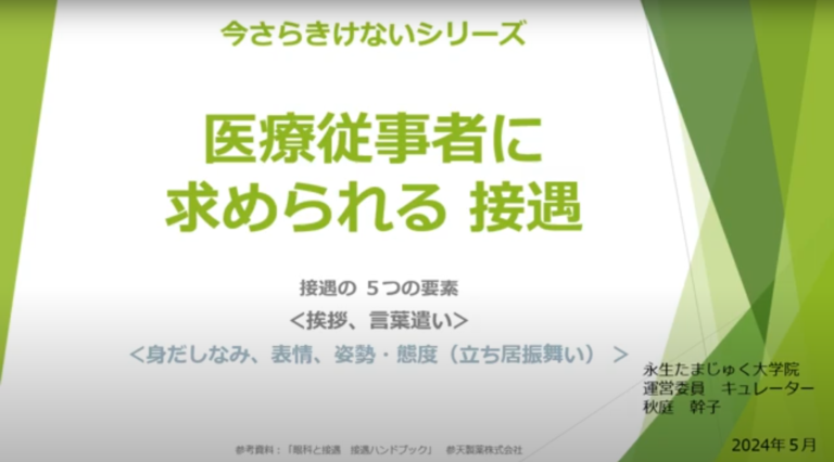今さら聞けないシリーズ「医療従事者に求められる接遇「挨拶、言葉遣い」」 2024 6/20 今さら聞けないシリーズ_登壇映像 2024.06.20 2024.06.20 この情報へのアクセスはメンバーに限定されています。ログインしてください。メンバー登録は下記リンクをクリックしてください。既存ユーザのログインユーザー名またはメールアドレスパスワード ログイン状態を保存する パスワードを忘れた場合 パスワードリセットはじめての方はこちら 新規ユーザー登録 今さら聞けないシリーズ_登壇映像 この記事が気に入ったら いいね または フォローしてね! Follow @tamajuku Follow Me よかったらシェアしてね! URLをコピーする URLをコピーしました! URL Copied! 今さら聞けないシリーズ「医療従事者に求められる接遇「身だしなみ」」 この記事を書いた人 たまじゅく事務局 この著者の記事一覧へ 関連記事 今さら聞けないシリーズ「ほうれんそう」 2024.06.20 今さら聞けないシリーズ「教える人と教わる人のマナー」 2024.06.20 今さら聞けないシリーズ「医療従事者に求められる接遇「身だしなみ」」 2024.06.20 今さら聞けないシリーズ「医療従事者に求められる接遇「表情、姿勢・態度」」 2024.06.20